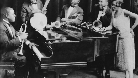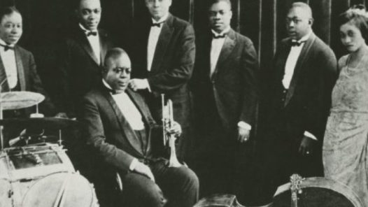 El Jazz - Baby Dodds, Honoré Dutrey, Bill Johnson, Louis Armstrong, Johnny Dodds, Lil Hardin, King Oliver (sentado) - 1923