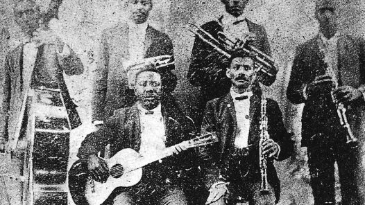 El Jazz - De pie: Jimmy Johnson (b), Buddy Bolden (c), Willy Cornish (tb), Willy Warner (cl). Sentados: Brock Mumford (g), Frank Lewis (cl) - Aprox. 1905