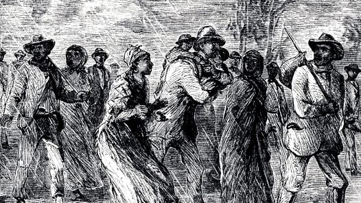 Grupo de esclavos huyendo al Norte del país ayudados por la organización "Underground Railroad"
